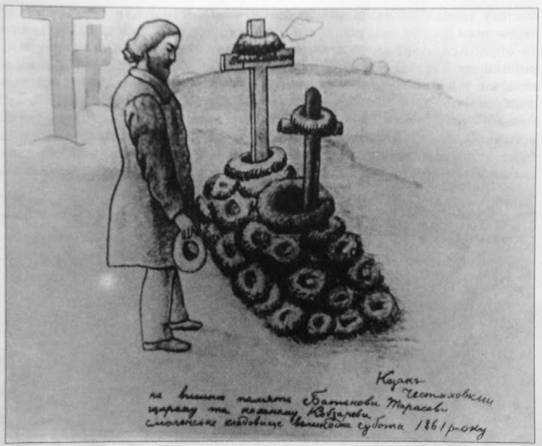 Могила Шевченка на Смоленському кладовищі у Петербурзі. Малюнок Честахівського