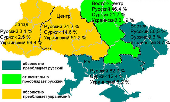 В протистоянні української мови та руського язика на теренах України утворилися 4-ри ментально світоглядні групи:
