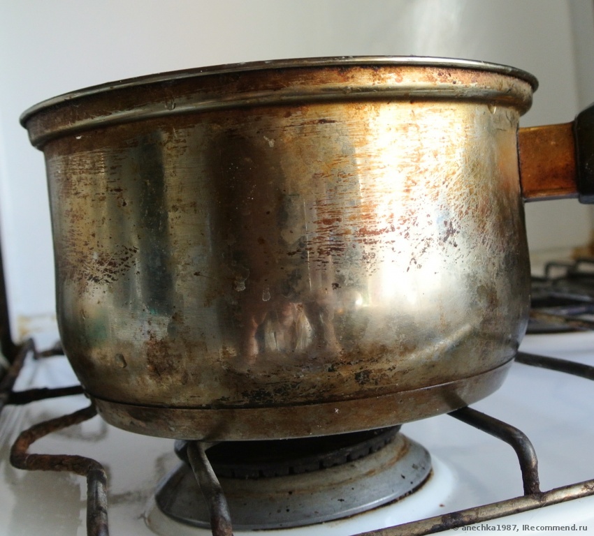 Вот такой позорно грязный ковш я откопала специально для этого отзыва. На фото видно большое количество пригоревшего жира и копоти.
