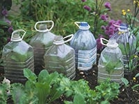 Cut the bottoms out of used plastic jugs to protect new seedlings. — Peter Anderson/Dorling Kindersley/Getty Images