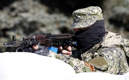 Armed men storm town hall and police station as town becomes latest to fall to pro-Russian forces as President Barack Obama announces sanctions