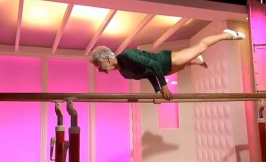 An 86yr Old Female Gymnast shows what she can do on the Parallel  Bars