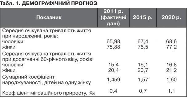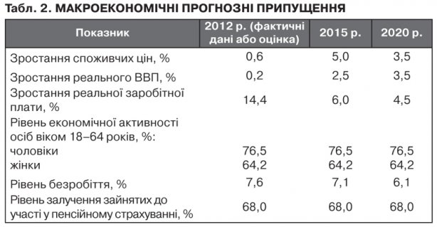 При розрахунках використовувалися дані середнього варіанта демографічного прогнозу Інституту демографії та соціальних досліджень (табл. 1) та макроекономічні прогнозні припущення (табл. 2).