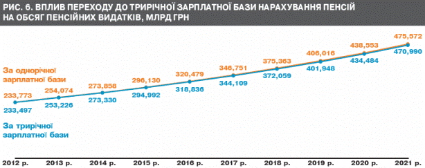 За результатами актуарних розрахунків, у 2012 р. економія завдяки переходу до трирічної зарплатної бази оцінюється в 0,3 млрд грн (рис. 6).