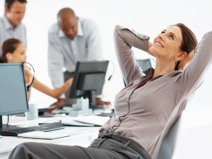 Знайди «затишне» місце на роботі, де ти могла б усамітнитися на 7-10 хвилин (переговорна кімната, коридор, гардероб тощо) і зробити невелику розминку. Розімни плечі й руки, зроби кругові оберти головою, розминаючи м'язи шиї. Потім роби нахили в сторони, розминаючи бічні м'язи, піднімайся на носки й опускайся на п'яти.