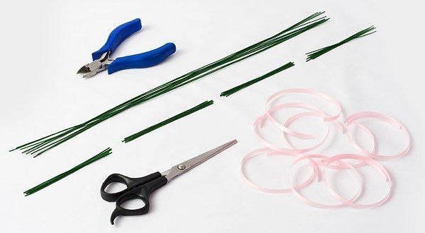 Відразу ж наріжемо довгими тонкими смужками зелену стрічку для листя квітки.