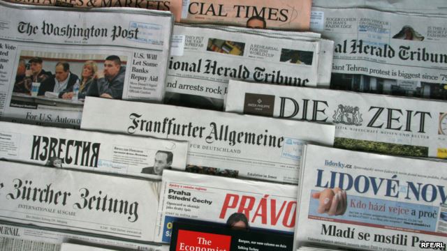 Лондонська Financial Times повідомляє про можливість введення з боку ЄС проти агресивної Москви гостріших санкцій, котрі можуть завдати відчутного удару по економіці Росії. Видання також радить ЄС та США виробити довготривалу спільну стратегію щодо України, враховуючи «географічне становище цієї держави між Європою та Росією». Для цього, як пише газета, «США та ЄС повинні докласти всіх зусиль, щоб Україна залишилася незалежною, а її майбутнє вирішували самі громадяни».