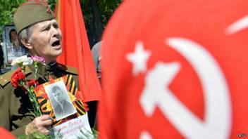 День перемоги в Україні зазвичай відзначали з радянськими стягами