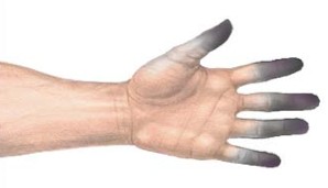 Діючи на судини, холод викликає їх звуження; виникає недостатність кровопостачання на певній ділянці тіла, проявляється збліднення шкіри. Якщо не надати вчасно першу допомогу, може статися тканинне відмирання.