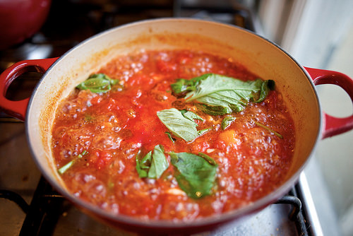 дрібно нарубати м'якоть помідорів, моркву натерти на крупній тертці, дрібно нарізати солодкий перець і часник. Все змішати, додати за смаком цукор, сіль і чорний мелений перець.