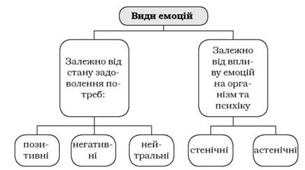 Негативні - наслідок незадоволеної чи недостатньо задоволеної потреби: сум, гнів, страх тощо.