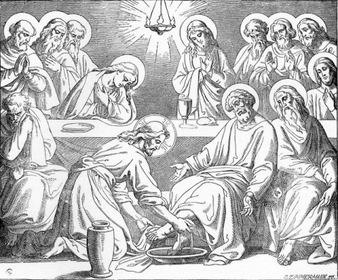 Євангеліє від Св. Івана також говорить нам про те, що Господь цього вечора обмив ноги Своїм учням, таким чином ще раз виявивши Свою роль Слуги та навчаючи християн у любові служити один одному та піклуватися один про одного.  На згадку про ту подію цей Четвер ще називають Чистим.