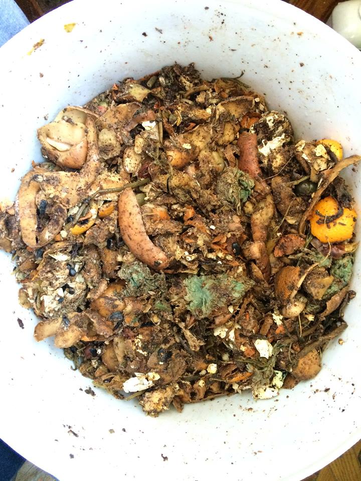 Для органічного сміття Маріанна придумала пристосування. Вона купила два відра, вставила одне в інше. Проробила отвори у верхньому відрі. Тут у неї накопичувалися відходи від приготування їжі та інші, що містять вологу, тому дірочки потрібні були, щоб рідина стікала в нижнє відро. Рідину, що при цьому виникає і яку фахівці називають «компостним чаєм», киянка використовувала для «підживлення» домашніх рослин.