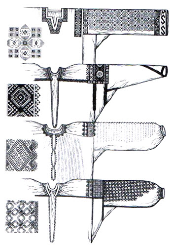 До теперішнього часу не перестаєш дивуватися винахідливості в застосуванні конструктивних прийомів при створенні деяких видів крою жіночої російської народної сорочки. За допомогою, здавалося б, примітивних прийомів - прямих ліній створювалися унікальні форми крою великих площин з акцентом декору на плечовому поясі.