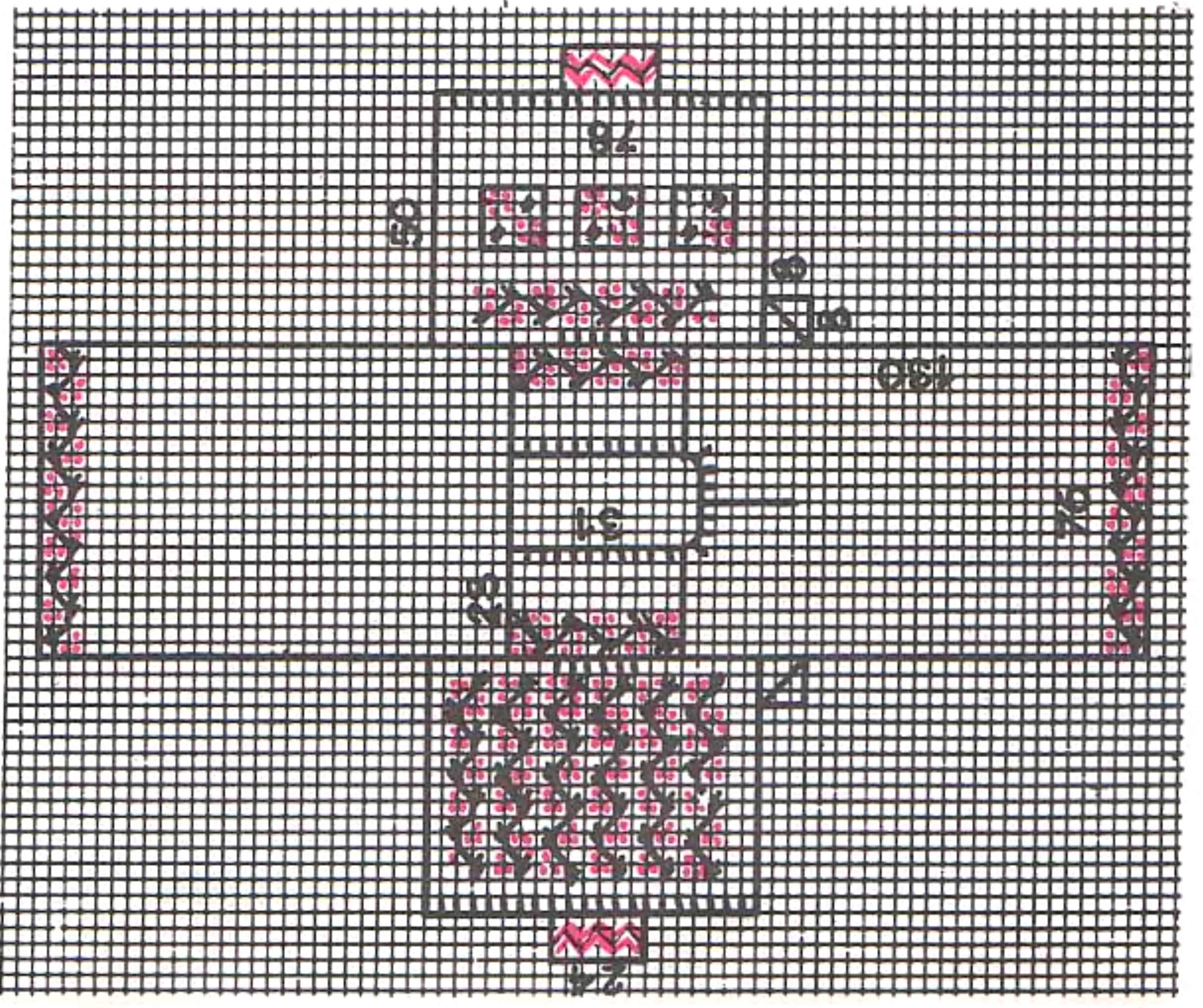 Приклади розташування орнаментів на сорочках такого крою, на схемах також вказані розміри: