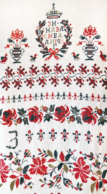 І справді, оглядаючи музейні рушники, здебільшого на них бачиш вишиття церков, хрестів (в основному грецьких і латинських. — Ю. Л.), традиційних «Христос Воскрес» чи «Дай Боже».