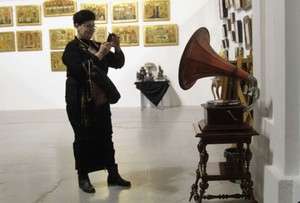Поруч із реалістичним живописом представлені старовинні ікони.