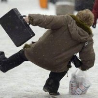 Неширокий крок, повільний темп і мінімальний відрив ступні від поверхні землі. Здається, всі ознаки старечої ходи. Однак у столиці такий метод пересування найактуальніший для осіб будь-якого віку, адже ми — в умовах тотального обледеніння. Ще на додачу — бурульки і брили снігу над головою, на яких теж треба зосереджувати свою увагу. Втім, не кожному вдається на всі сто бути обачним та обережним…
