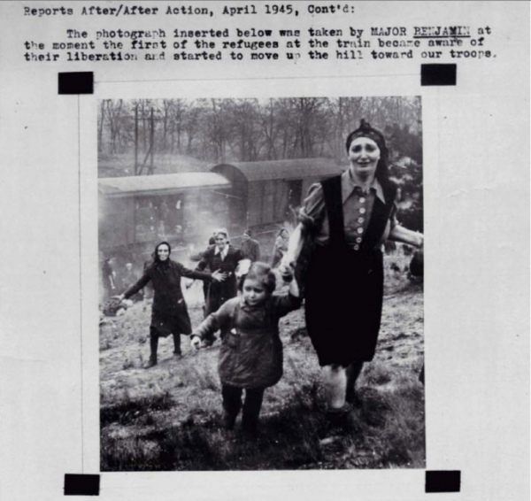 Єврейські ув’язнені у момент їх звільнення з табору. 1945 рік.