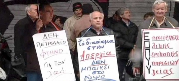 Попри негоду, сотні осіб вийшли на вулиці сказати “ні” затягуванню пасків, що багатьох людей похилого віку поставило на межу виживання. За останні два роки пенсійні виплати скоротили на 5-15%. Крім того, пенсіонерам доводиться самостійно платити за ліки через брак видатків на медичне страхування.