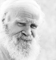Під цвітінням бузку, як і завше, у нашім дворі Спочиває сивенький дідусь, усміхаючись дітям, І радіє своїй дев’яностій весняній порі. Хоча цвіту квітневого бачив старенький немало, Зморшкувате чоло все ще в подиві ходу весни. Сірі очі горять! – хоч від старості трохи запали, А від мудрості стали як срібно коштовні вони. В тих запалих очах ностальгія така сумовита, Тільки маски неспокою він на обличчя не вдів. «Я, нажаль, не зустріну свого дев’яностого літа… Та, на щастя, умру під буяння травневих садів.»