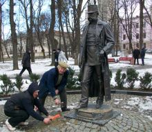 Разом зі снігом зійшов не тільки асфальт із доріг та плитка на тротуарах. З цієї ж причини у Чернівцях «поплив» і штучний камінь з підніжжя пам’ятника цісарю Австро-Угорської імперії Францу-Йосипу I. Переукладати його заходилися двоє літніх чоловіків. З’ясувалося, що то зовсім не працівники ЖЕКу чи колеги по мистецькому цеху львівських авторів скульптури.