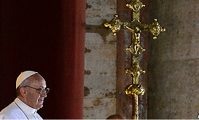 У своєму зверненні до вірян новий понтифік попросив їх про молитву за нього і похилив перед ними голову, після чого на площі Святого Петра запанувала тиша.