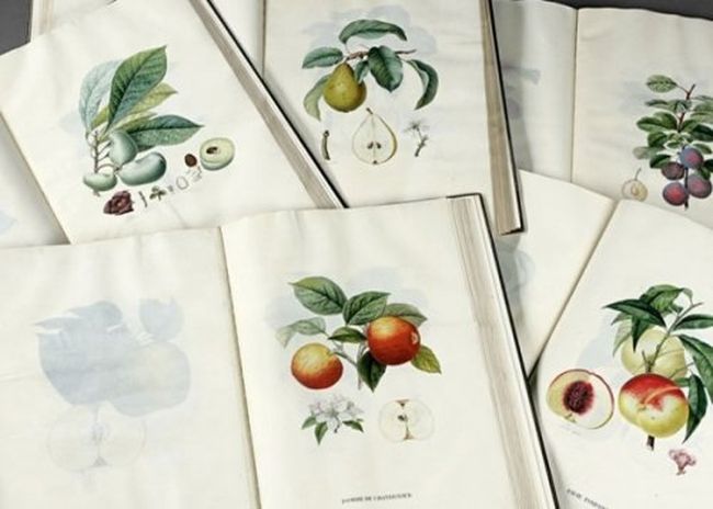 «Про плодові дерева», Анрі Луї Дюамель дю Монсо (Traitе des Arbres Fruitiers, Henri Louis Duhamel du Monceau). $ 4,5 млн, 2006 рік, аукціон Pierre Bergе & Associеs (Брюссель) ($ 4,8 млн на нинішніх цінах). Трактат про плодові дерева французького фізика, хіміка, агронома, члена Академії наук Анрі Луї Дюамель дю Монсо (1700-1782). Прекрасно оформлений двотомник з ілюстраціями цілого ряду відомих художників того часу, які зображують 16 видів фруктових дерев, їх плоди, листя, насіння, фрукти. Даний екземпляр книги був свого часу закуплений в особисту бібліотеку короля Людовика XV, для чого був видрукуваний в особливо розкішному вигляді, з золоченій обкладинкою.