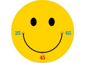 На основі одного з наймасштабніших опитувань (в якому брали участь 2 млн жителів Америки, Європи і кількох країн, що розвиваються, серед яких були представники різних груп, національностей, доходів), проведеного американськими вченими, був побудований своєрідний «графік щастя», який виявився схожим на букву U англійського алфавіту або усмішку. На цьому графіку піки «усмішки» припадають на юність і старість, а середній вік опинився у найнижчій точці, тобто люди віком 30–40 років виявилися найбільш нещасливими і більш схильними до депресій, ніж люди похилого віку.