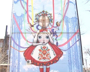Один із них - чотириповерховий житловий будинок - він оздобив в українському стилі, намалювавши на ній традиційну українську ляльку-мотанку, повідомляє кореспондент УКРІНФОРМу.