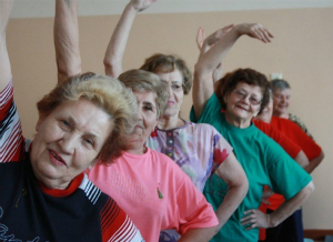 - Нахили в підлогу. Дуже корисні для попереку! Нагинатися м'яко, спокійно, ноги на ширині плечей. Три сети по 6 повторів. Після кожного нахилу повністю випрямляйтеся. Розтяжка для рук ззаду. Зчепивши руки за спиною в замок, піднімаємо їх якомога вище і трохи пружинить. Три сети по 6 повторів.
