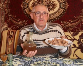 - Ось ця - із зелених шкурок, - пояснює Мирон Плугатор. - Зроблена кілька тижнів тому. Для неї треба взяти шкурки із 30 горіхів, залити літром спирту, закорковувати і тримати протягом двох тижнів на сонці.