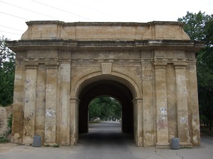 Катерининський собор побудований у 1782-1787 pp. за участю професора петербурзької Академії мистецтв архітектора І. Старова та скульптора Г. Замараєва. В інтер'єрі знаходяться твори живопису, приписувані В. Боровиковському й Д. Левицькому, а також, здогадно, поховання князя Г. Потьомкіна. В огорожі собору містяться могили генерал-аншефа І. Меллер-Закомельського, інженер-полковника М. Корсакова, генералів І. Синельникова, С. Волконського, П. Максимовича, І. Горича-Большого, полковника П. Мартинова та ін. Собор - прямокутна в плані споруда базилікального типу, однобанева, зі значним виносом бічних рамен та вівтаря з півкруглою апсидою, на підвалах. Три пари хрещатих у плані стовпів поділяють внутрішній простір на три нави. Низький підбанник несе баню, прорізану люкарнами. Стіни муровані з черепашнику; конструкції двосхилих дахів та бані - дерев'яні, вкриті покрівельною сталлю.Будівля вирішена у формах класицизму. Її фасадам притаманна урочиста стриманість. Основним мотивом членувань є ритм прямокутних вікон з люкарнами на тлі суцільно почленованих дощаним рустом стін. На головному фасаді - чотириколонний портик тосканського ордера з виразним трикутним фронтоном. Причілки бічних рамен вирішені як пілястрові портики. Усі входи фланковані арковими нішами з копіями античних скульптур.На поздовжній осі собору, на захід від нього, розташована триярусна, прямокутна в плані дзвіниця, зведена 1806 р. Фасади - у формах класицизму.Собор і дзвіниця є головними елементами комплексу, видатними пам'ятками архітектури з числа найдавніших у Херсоні.Арсенал складається з кількох корпусів. На червону лінію забудови вулиці виходять два флангові корпуси (побудовані в 1784 p.), сполучені більш пізньою мурованою огорожею. Внутрішній двір первісно слугував складом артилерійської зброї. Зведеній у формах зрілого класицизму споруді властива центрально-осьова симетрія. Два ідентичні триповерхові флангові корпуси з'єднані двоповерховим підковоподібним у плані павільйоном, відкри-им у створений ним внутрішній двір колонадою. Його внутрішнє розпланування первісно було дворядним, флангових корпусів - змішаним. Стіни муровані з блоків черепашнику. Двосхилі дахи по дерев'яних кроквах укриті покрівельною сталлю.Головні фасади флангових корпусів мають вигляд монументальних шестиколонних портиків великого тосканського ордера з повним антаблементом та трикутним фронтоном. Наріжні частини підкреслені рустованими лопатками. Рустом виділено також 1 -й поверх, трактований як цоколь.Північна, або Московська брама (за первісною назвою - Петербурзька), розміщена в північно-східній частині валів, сполучала фортецю з воєнним форштадтом.Брама - прямокутна в плані, з центральним арковим проїздом вздовж поздовжньої осі. Матеріал - черепашник, фасади потиньковані. Надвірний та зовнішній фасади - ідентичні, в основі їхнього вирішення - пілястрові портики з двох пар фланкувальних пілястр та повного антаблемента з аттиком над ними. Арка проїздупідкреслена архівольтом із замковим каменем. Фриз має тригліфи. Усе це підсилює монументальний характер споруди.Західна, або Очаківська брама та фрагменти земляних валів обабіч неї збереглися в західній частині території фортеці, яку вона первісно пов'язувала з грецьким форштадтом. Архітектурні форми, матеріали та конструктивні 