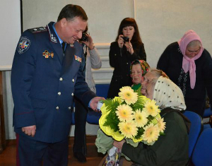 Відразу одинадцять новеньких мобільних телефонів отримали пенсіонери Здолбунівщини з рук головного міліціонера Рівненщини Василя Лазутка. А Парасці Самсоновій генерал вручив ще й букет жовтих гербер та привітав її з днем народження з найкращими побажаннями здоров’я та дожити до 100 літ, адже у цей день пенсіонерці лише 85.