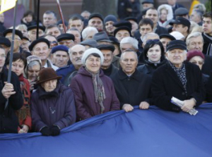 «Наш вибір – об’єднана Європа!», «В єдності – сила!», «Час позбутися совка» – саме під такими гаслами сьогодні, 17 листопада, у центрі Львова відбулося віче на підтримку євроінтеграції України.