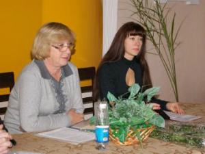 Наступною взяла слово директор районного територіального центру. Вона детально розповіла про специфіку його роботи. Загалом, Валентина Шмуль назвала п’ять відділень, які включає в себе терцентр. Найбільше і найстарше — це відділення соціальної допомоги вдома. Щоденно соціальні працівники терцентру обслуговують 763 людини, які цього потребують. Це — пристарілі громадяни та інваліди, старші вісімнадцяти років. За словами директора, за кожним соцпрацівником у місті закріплено 10-12 людей, яких обслуговують не рідше, ніж двічі на тиждень. У відділенні надання адресної грошової допомоги можна скористатися послугами швачки, перукаря, взуттєвика та взяти на прокат засоби реабілітації (інвалідні візки, милиці чи ходунці). У відділенні соціально-побутової адаптації працює університет третього віку. Там існує факультет іноземної мови. Та, за словами Валентини Шмуль, заняття на даний час призупинили, так як відсутній волонтер, який мав би бажання викладати дисципліну. Ще у відділенні вивчають комп’ютер, відвідують літературний гурток «Слово поета» та займаються руховою терапією — пілатесом. Загалом, як стверджує директор терцентру, за рік, у середньому, соціальні працівники обслуговують майже чотири тисячі людей.