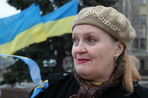 На донецькі мітинги до пам'ятника Шевченку щодня виходить пенсіонер і інвалід Любов Урванцова. Жінка важко пересувається, спирається на палицю, але бути на євромайдані у своєму містідля неї - обов'язок.
