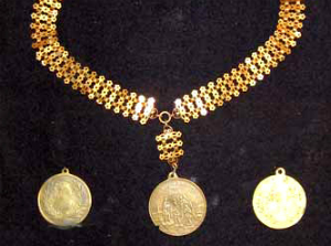 Експонати виставки - нашийні прикраси з підвісками, дукачі - з колекції Олега Євпак (Біла Церква), яка налічує більше 100 екземплярів.