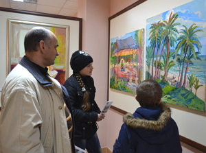 Експозиція виставки представлена полотнами різної жанрової спрямованості, тематика картин розмаїта: від мальовничих краєвидів рідного краю та зарубіжних країн, до вишуканих портретів та творів на біблійну тематику.