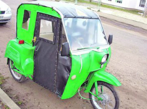 Транспорт довелося вдосконалити - спорудити двері з фанери, оббити дерматином. Кабіна необхідна дідусеві через хворі ноги. Він багато років їздив на роботу в райцентр на мотоциклі і поступово «відморозив» суглоби. Тепер ходити з важко, тому збирався купувати машину, але тут підвернувся німецький трьохколісник. Зараз пенсіонер не може натішитися техніці, адже витрата бензину у мотоцикла - 3 л на 100 км .