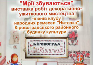 Виставки робіт декоративно-ужиткового мистецтва «Мрії збуваються» членів клубу народних ремесел «Ниточка» Кіровоградського районного будинку культури до 7 –річчя заснування