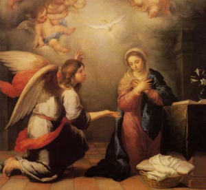 Архангел Гавриїл був посланий Богом в місто Назарет до Пресвятої Діви Марії і повідомив, що Господь обрав її бути Матір'ю Божою. Ангел з'явився в будинок праведного Іосифа, коли Марія читала Священне Писання, і сказав: "Радуйся, благодатна! Господь з тобою! Благословенна ти між жонами". Далі ангел повідомив, що Марія народить сина і має назвати його Ісусом. Марія відповіла, що вона раба Господня і хай буде так, як хоче Бог.