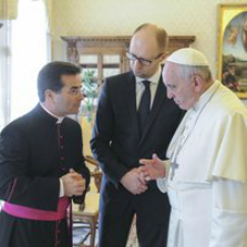 Арсеній Яценюк звернувся до Папи Римського Франциска з проханням молитися за Україну і зробити все, аби в Європі панували мир і стабільність. Уже інформуючи представників ЗМІ про хід переговорів, він нагадав, що церква в 1978 році зробила чимало під час конфлікту між Аргентиною та Чилі та Карибської кризи, коли Папа Римський доклав зусиль, аби не виникла ядерна війна між США і Радянським Союзом.