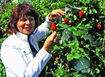 Сусідка фотографується біля полуниці Ігоря Федоришина. ”Фотографуються, пригощаються, але в себе експеримент не повторюють”, — каже садівник