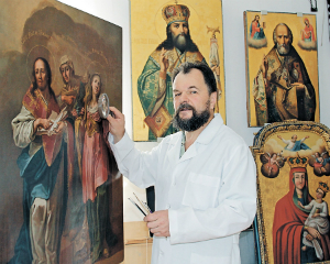 — Моя головна стихія — це ікони і картини, — каже художник. — Раніше для їхньої реставрації були потрібні матеріали і час на виконання, нині — також час і… здоров’я. Очі вже не такі, як у тридцять чи сорок. А хочеться все робити досконало. Реставрація — це не ремесло, а спосіб мислення. Нас не даремно називають нейрохірургами живопису. Бо наш брак, як і брак у нейрохірургів, виправити неможливо.