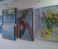 Картини виконані у двох техніках – живопис та графіка, тематика різноманітна: від оголеної жіночої натури до пейзажів та абстракцій – дає про себе знати різне авторство робіт.