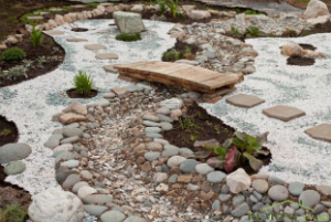 Все більшу популярність в ландшафтному дизайні знаходить елемент під назвою "сухий струмок", який не наповнений водою, а викладений каменями, що імітують русло висохлого струмка. Цей прийом прийшов до нас з мистецтва японських садів і тепер широко застосовується в самих різних садових стилях.