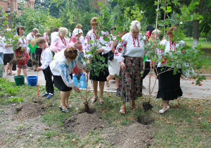 – Ми сьогодні садимо 23 калини, стільки, скільки років Незалежності України. Ці рослини принесли соціальні працівники Територіального центру та його відвідувачі, які проживають у приватному секторі та мають у своєму господарстві кущі калини. Ми не лише посадимо їх, а й доглядатимемо рослини і надалі, якщо якась з них не прийметься, ми посадимо іншу. А в наступному році на 24 річницю Незалежності досадимо ще один кущ, і так – щороку. Це місце ми обрали не випадково, адже лише з вірою і надією можна побудувати справжню незалежну державу, – розповіла директор Територіального центру Галина Бачинська.