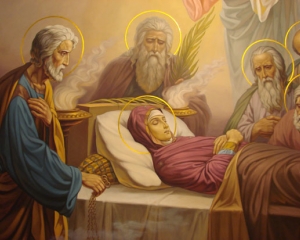 З апокрифів відомо, що за три дні до смерті Марії явився архангел Гавриїл і сповістив про близький перехід її до вічності.