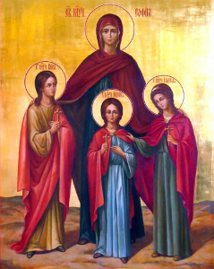 Свята Софія та її дочки Віра, Надія та Любов, зазнавши за Христа великих душевних мук, зараховані Церквою до лику святих. Вони показали, що для людей, які є у благодаті Святого Духа, недолік тілесних сил аніскільки не є перешкодою до прояву сил духу і мужності. Їх святими молитвами Господь нехай зміцнить і нас в християнській вірі і в доброчесного життя.